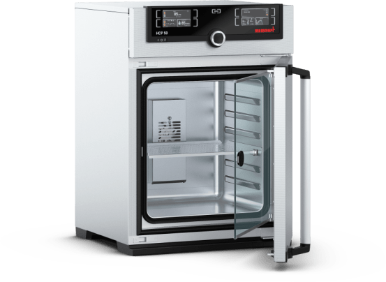 Perfect environmental simulation in the humidity chamber This climate chamber offers the full range of comfort, reliability and safety. Thanks to active humidity control from 20 % to 95 % rh and unsurpassed homogeneity of temperature and humidity over the entire interior, it is ideally suited for environmental testing, environmental simulation, accelerated service life tests and 85/85 tests according to IEC 60068-2-67 and IEC 60068-2-78. Temperature range up to +90 ’C 4 model sizes (56 to 241 litres volume) 1 model variant: TwinDISPLAY Active humidity control 20 to 95 % rh Double doors as standard: Prevention of contamination and drops or rises in temperature, and at the same time an optimal view of the sensitive chamber load through wide-area heated inner glass door Humid environment without condensation The active humidity control ensures an ideal homogeneity of temperature and humidity as well as short recovery times after opening the door in this attractively priced and practically maintenance-free climate chamber. In combination with heating on all six sides, including heated inner glass door, it also minimises vaporisation in the interior and thus the risk of condensed water dripping onto the test object. An aluminium thermal conductive layer supports optimum temperature distribution and serves as a heat accumulator in case of a temporary power failure. Comfortable equipment for accelerated service life tests To ensure that environmental tests and accelerated life tests such as 85/85 tests run reliably and safely, the humidity chamber HCP offers a wide range of comfort functions: Standard feed-through on the rear panel, battery-buffered ControlCOCKPIT (option), process runtime starts with SetpointWAIT function only when the setpoint temperature is reached, alarm messages can be sent via e-mail or SMS with MobileALERT (option) and much more. A Memmert humidity chamber offers unique advantages Intuitive and easy-to-use operating menu Heating concept specifically adapted for a precise and homogenous temperature control A wide range of options for programming and documentation of different temperature/humidity profiles via Software AtmoCONTROL Alarm functions, three-fold overtemperature protection and simultaneous display of all parameters provide safety for samples and cell cultures Almost exclusive use of high-quality and easily cleanable stainless steel for the working chamber and housing 3 years guarantee worldwide Temperature Humidity Working Range HCP Not all climate chambers are the same. The humidity content of the chamber load, the ambient conditions and the respective temperature-humidity working range are decisive factors in the selection of the right appliance. In the adjacent diagram, you can see the possible temperature/humidity combinations for our humidity chambers HCP. Within the respective temperature-humidity range, permanent operation is possible (at an ambient temperature of 22 ’C ’€ 3 K, relative humidity < 50 %). Condensation may occur in the threshold range. To which extent depends on the humidity content of the chamber load and the ambient conditions. Temperature Humidity working range HCP