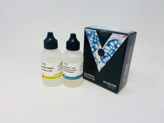 The ImmPRESS™ polymerized reporter enzyme staining system uses novel conjugation and micropolymer chemistries to create a highly sensitive, ready-to-use, one-step, biotin-free detection system. This unique micropolymer of highly active enzyme (peroxidase or alkaline phosphatase) is attached to our affinity purified secondary antibodies, producing reagents with outstanding sensitivity and low background.